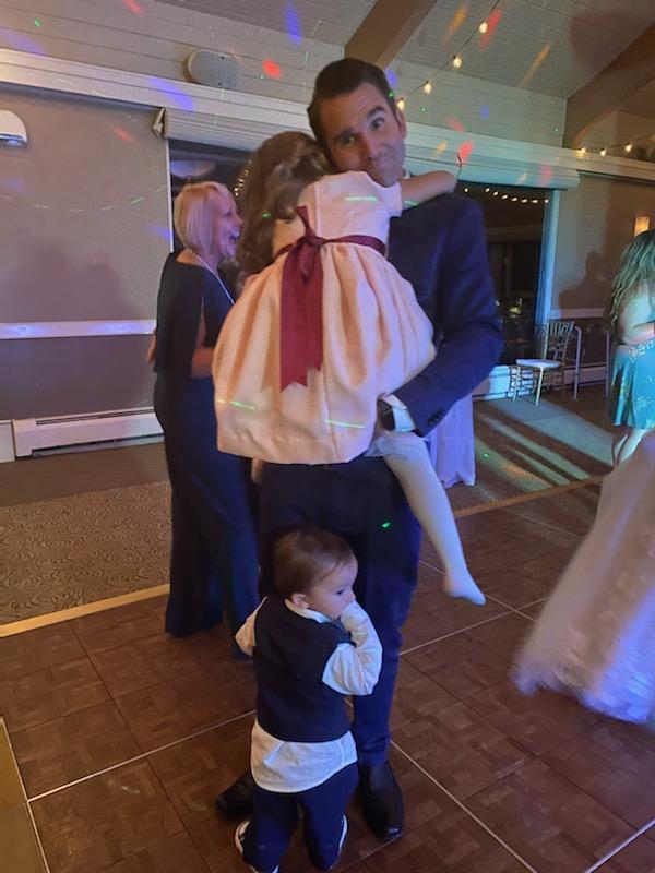 Eventually, we proved to our kids we weren’t liars. There was music, there was dancing, there was dessert. The kids loved seeing their aunt dance, and they would later say that their favorite part of the wedding was when she kissed their new uncle. By the end of the night the little man was a complete mess. Handsome little outfit in shambles, and I wasn’t looking much better. He had chocolate on his hands, so I had tiny chocolate hand prints on my suit. But at this point I didn’t care. Maybe it was the relief of finally being able to enjoy the party, or maybe it was the open bar, but he could have lit my tie on fire at that point and I wouldn’t have cared. They were all having fun.